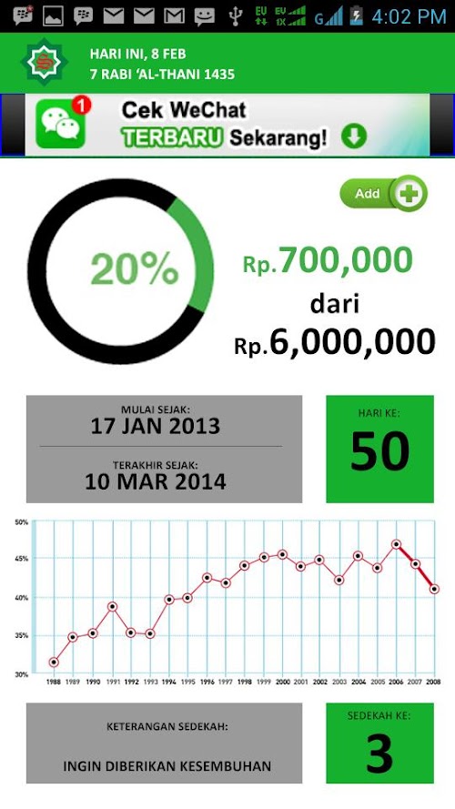 Refer to that, The main purpose of SAHABAT ISLAM App is to be a reminder of Muslim in conduction good deeds, and to be function as Platform of other Muslim to donate and be part of this App development so InsyaAllah, Allah SWT may reward those who support this App through donation/ sadaqah will get the same reward as those who will recite, dzikir, dua through this App. The least that you can do is invite other Muslim to download this App as form of your support to us.