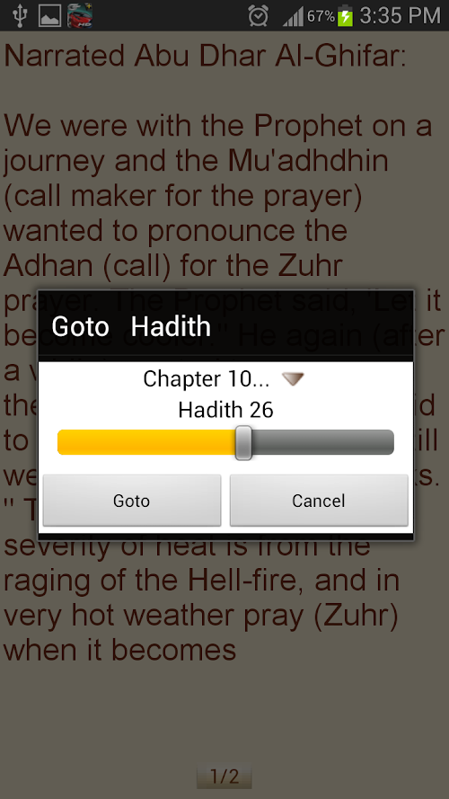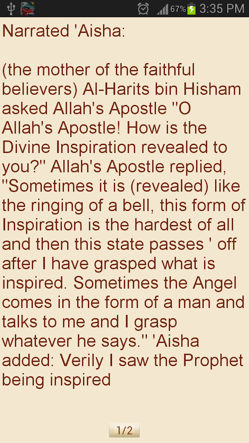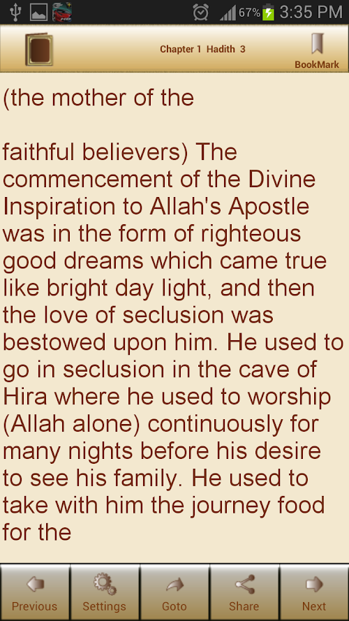Read Complete Sahih Al-Bukhari Hadith Book Translated in English Language on your Android Phones. With built in text customization features. User can send or share any Hadith or part of any Hadith in English to his / her friends through many social sites like Facebook and twitter.