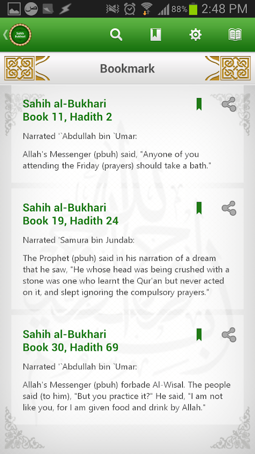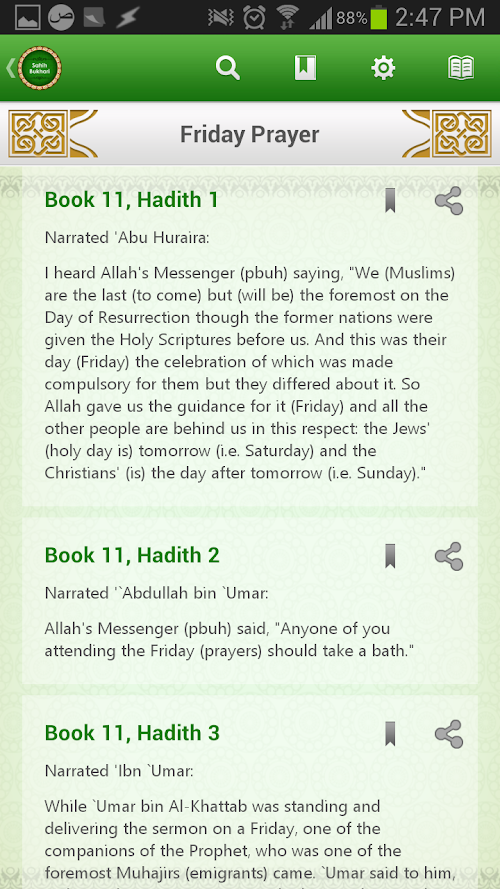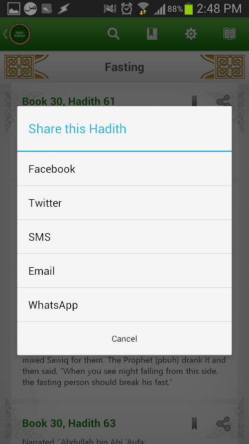 - Share any hadith directly to Facebook, Twitter, WhatsApp, Email & Text