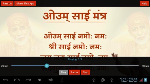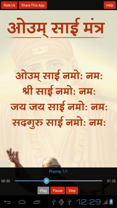 This Application contains Sai Mantra in Hindi Language with Audio.