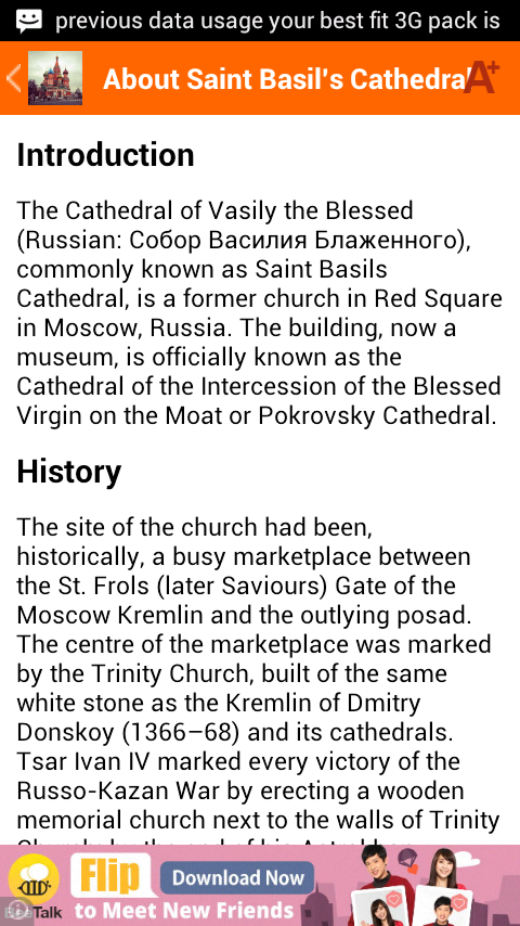 Monuments are the pride of the country they belong to. This Saint Basil’s Cathedral app will provide you all the details about the famous monument. The Saint Basil’s Cathedral is situated in Moscow, Russia and is now a museum, is officially known as the Cathedral of the Intercession of the Blessed Virgin on the Moat . The church is often mislabelled as the Kremlin owing to its location on Red Square in immediate proximity of the Kremlin.