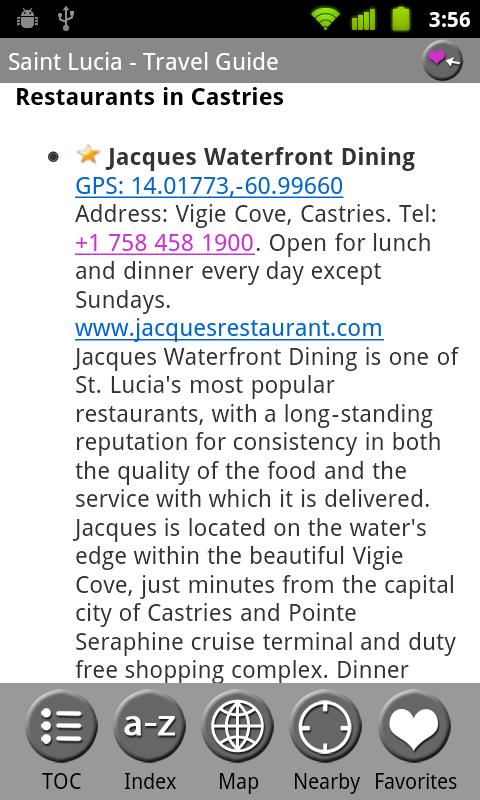 ✔ The top restaurants have been individually selected by MobileReference editors. These restaurants are marked by a star in the EAT chapter and are plotted on the GPS map.