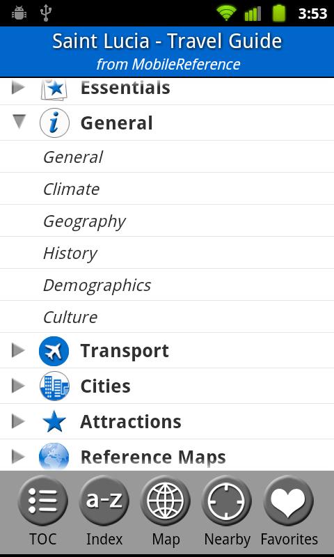 MobileReference Travel Guides provide detailed, practical information about attractions, landmarks, transportation, cultural venues, dining, lodging, history and much more. They are indexed alphabetically and by category, making it easier to access individual articles. Attractions can be viewed on an offline GPS map along with your current location so that you can easily find attractions near you as you explore the city.