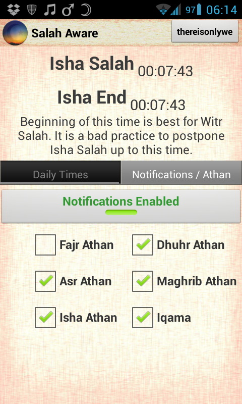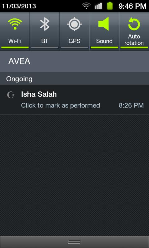 For every new salah time update, you receive a notification that is non-disturbing. If there are few minutes left for current salah time to expire and you still haven't interacted with the notification, you receive new, more aggressive notifications as reminders.
