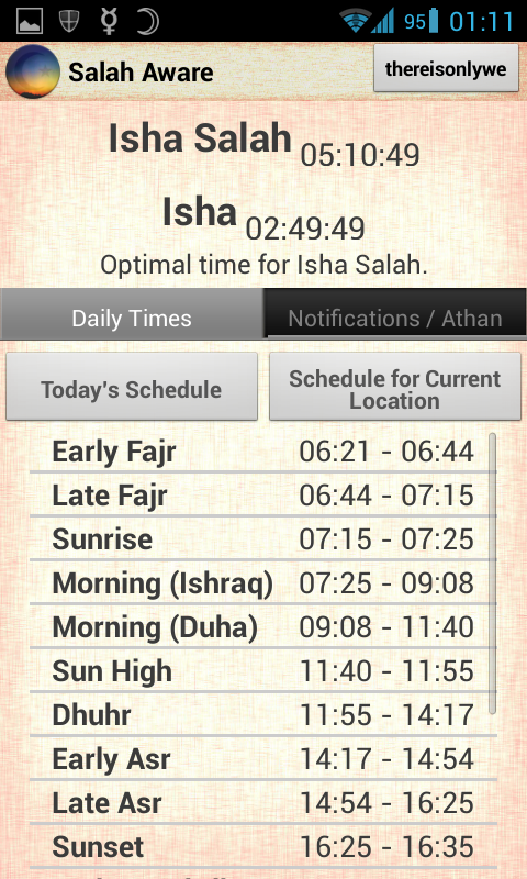 Perform your prayers on time! Salah Aware encourages you to integrate daily salat into your everyday life. Salah Aware not only displays daily true Islamic prayer times for your location, but it also helps you not miss a prayer by keeping you informed about unperformed salah belonging to the moment. Salah Aware also features a highly customizable alert system. Additionally, assuming you connect to internet at least once on each location change, you don't need an active internet connection.