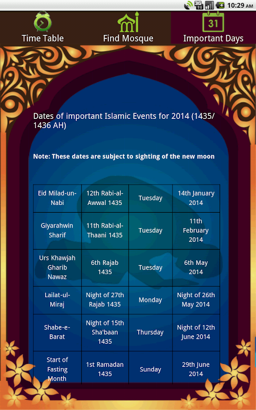 List of important islamic dates like ramadan, lailatul kadr, hajj etc.