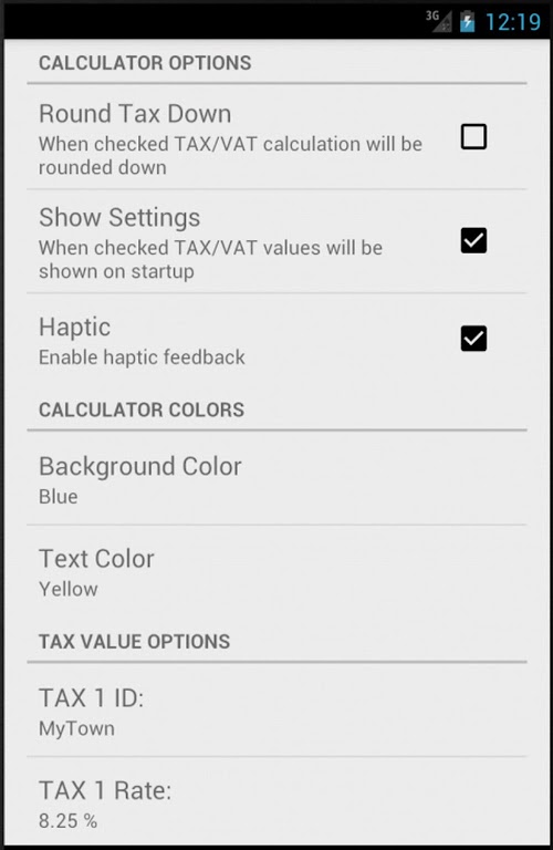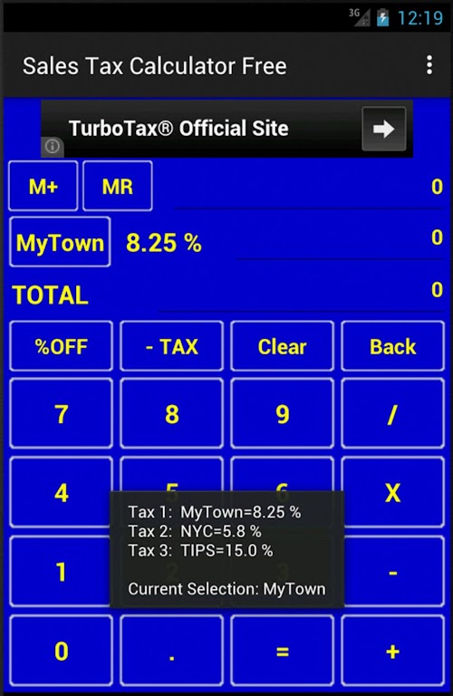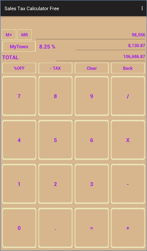 With three configurable TAX options to quickly change from one to the other, great for people who travel or need to calculate TAX in different cities.