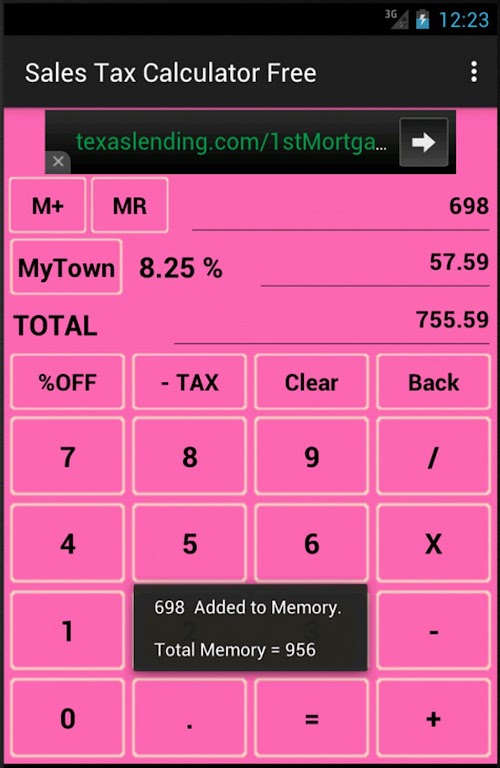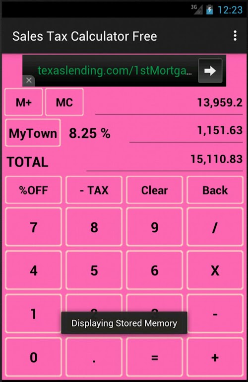 Sales Tax / VAT Calculator is a handy calculator that will display sale price, tax and total in real time as you enter values and make calculations. Find out the exact price to pay for an item with a discount using the built in discount calculator. The absolutely best calculator for shopping and sales people, including memory functions to keep a running total.