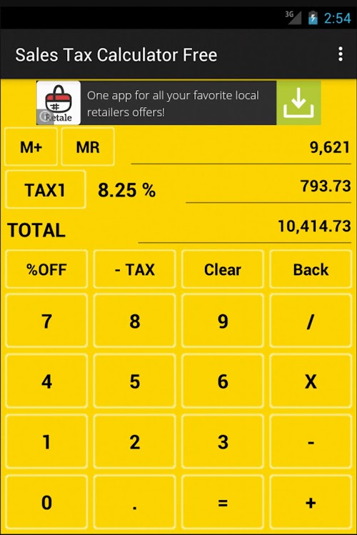 This is a very simple to use sales tax calculator that only requires the price and the rate of sales tax usually once. The app would save the sales tax rate for you so you would not need to enter it every time. You then get both the full price and the amount of tax of your item and you are good to go! You can now calculate the tax and total of multiple items!