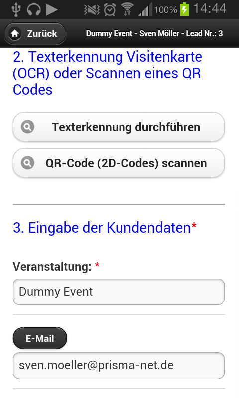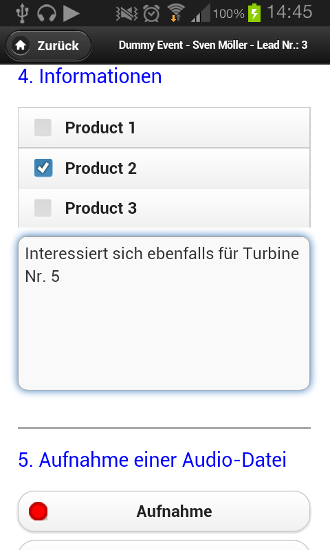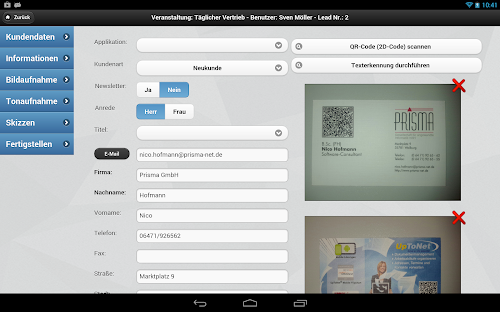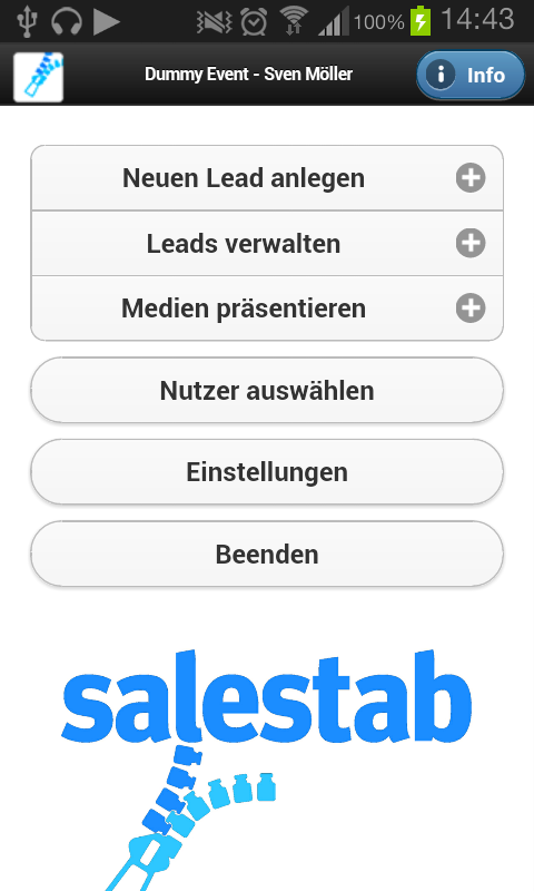 salestab is a tablet and smartphone application for electronic lead generation, both at exhibitions and events, as well as in daily sales. With salestab you create professional trade show reports and send and present information (such as brochures or price lists) directly from within the application, including your predefined acknowledgments. Synchronize these data with your customer management system.