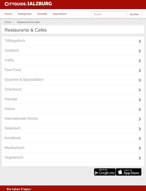 Mit dem CITYAPP Salzburg haben Sie die gesamte Stadt digital für die Hosentasche und alle wichtigen Infos rund um die Uhr immer griffbereit dabei. Mit dem CITYAPP informieren Sie sich über Events, Top-Locations, Branchen und Unternehmen vor Ort. Gehen Sie mit der 360° Panoramafunktion auf einen virtuellen Stadtspaziergang bis in die Geschäfte hinein, lassen Sie sich Öffnungszeiten, Services und Marken anzeigen. Finden Sie mit der Such- & Around Me Funktion das nächste Restaurant, den nächsten Floristen, Bäcker oder Modeladen und profitieren Sie von besonderen Aktionen (Angebote & Coupons) im CITYAPP Salzburg.