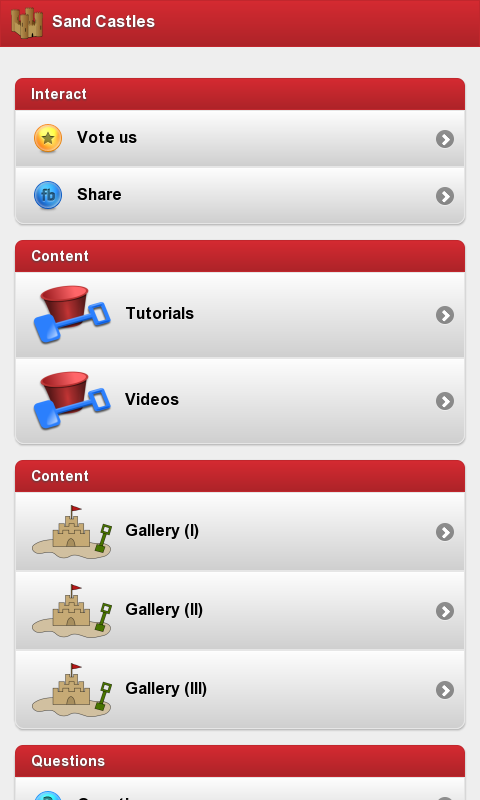 Building sand castles and other sand figures has never been so easy. Just follow our tutorials and start making sand castles with ease. Surprise your kids with this new app. Have fun in the beach with our beach games, making buildings and sculptures with the sand. Watch our video lessons and our selection of sand castle photos.