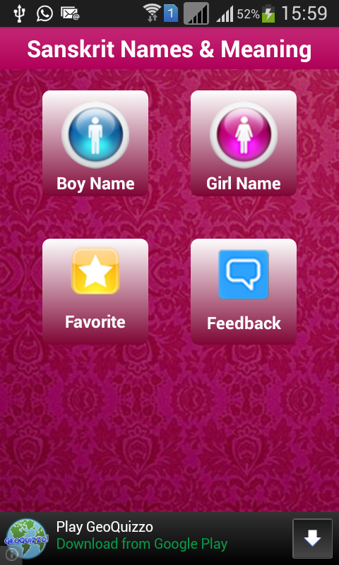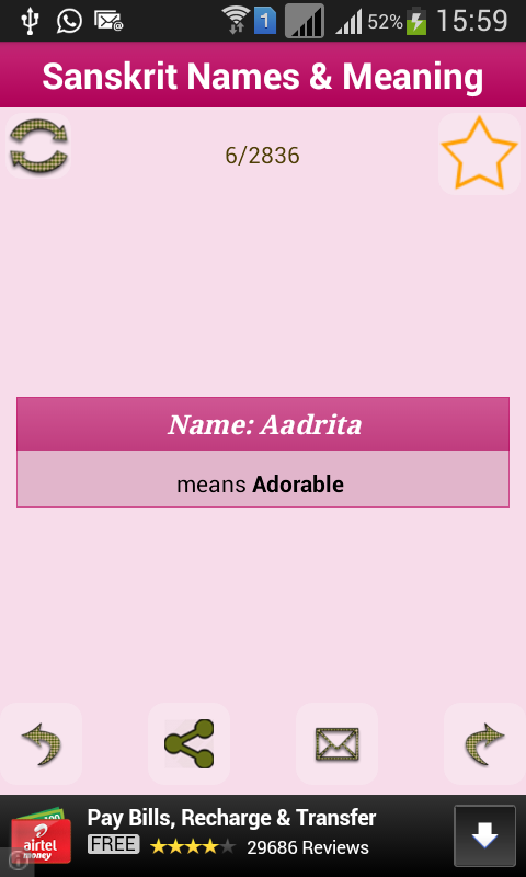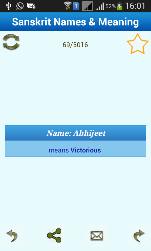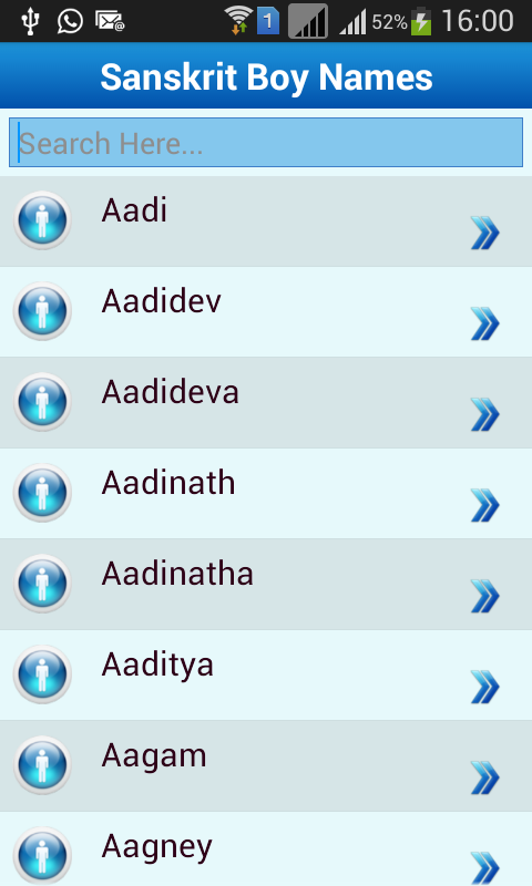 This is Ultimate New & FREE Offline collection of Sanskrit Baby names & Meaning (By AISS Pvt Ltd).it has huge data of Sanskrit baby name with Meaning.it has also option to add the name in favorite so that you can choose the best name for Your Baby.you also have option to search name gender wise like boy or girl or all names. In this app you can share name and meaning with your friends