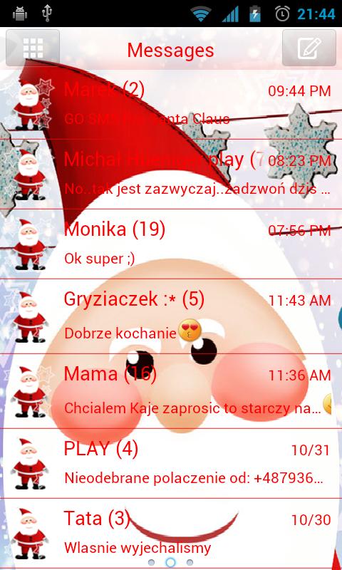 Christmas day is coming very fast. Feel atmosphere of this event and have fun with your friends. Be on top and show others how Christmas looks like in mobile world. This skin was created in new and modern style. All of it fill sweet effigy of Santa Claus. Colors was selected also to atmosphere. White and brick red color may highlight the nature of this fantastic event. Christmas day is a time of love, sharing gifts and meeting family. If you like sweetness, love, and this unusual atmosphere download our Santa Claus Theme. Feel the mood of Christmas today for free.