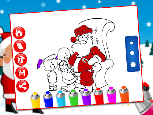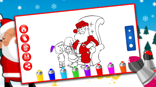 Enter in to the Santa coloring city! Pick up the paint brush and color book to enjoy an amazing pre school doodle and coloring game for kids. Use your fancy imagination and real colors to mix and make colorful designs in Santa images to make your red Christmas Santa and holiday fun come to life with colors. Help your kindergarten kid learn to color Santa and Christmas fun gifts with endless bright colors in order to nourish the creative ability of your child with this awesome learning and coloring app for kids. Santa Coloring is an amazing preschool kids coloring game for bright kids!