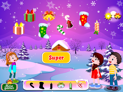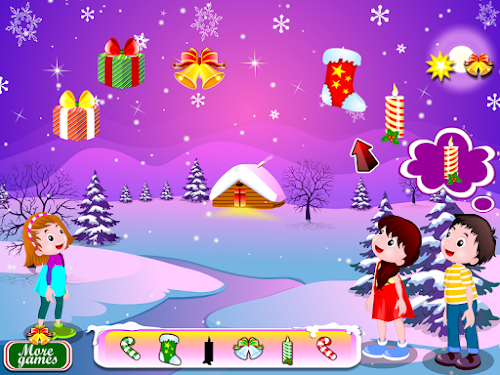 Now kids can come and sure will love how you arranged Santa's house. The three children will need you to identify ornaments that can be used to decorate the tree.