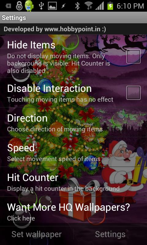 Merry Christmas and Happy New Year everyone! This is an high quality beautiful interactive playable Live Wallpaper, you can play with realistic looking Bubbles in this wallpaper, just bust bubbles to get Santa Christmas Gifts and score points. Celebrate the wonder of Christmas with this wallpaper.
