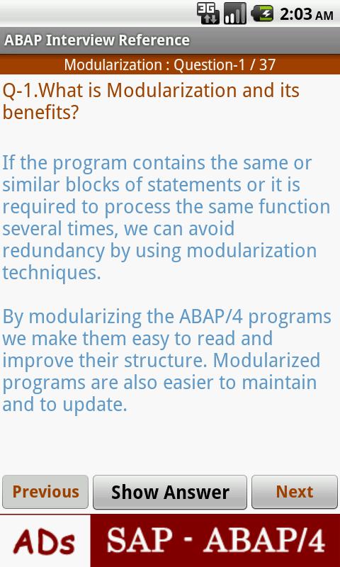 App helps in refreshing the concepts of SAP ABAP & boosts your confidence in attending the interview.
