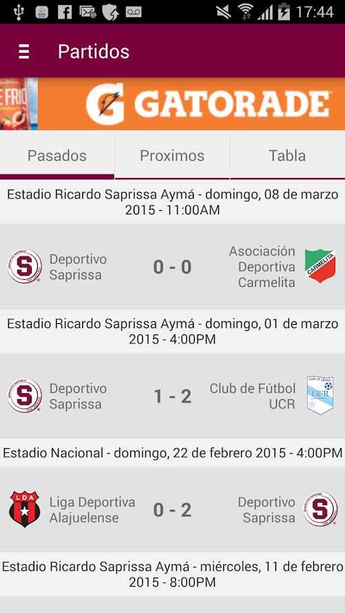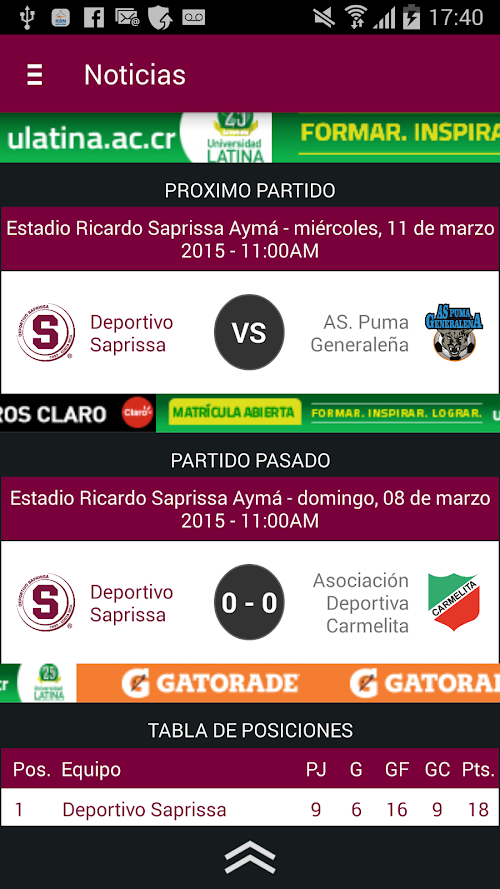· Matchtracker en vivo de los partidos del equipo.Official application of Deportivo Saprissa. A platform for access to the latest information, proprietary data, photos, wallpapers, songs, social networking platforms and interaction with the community of fans of Deportivo Saprissa. The platform will always be free and is intended to bring the fans to have membership in the team.