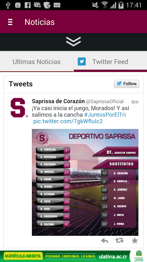 Deportivo Saprissa proudly offers all his fans this tool, giving them the opportunity to be a little closer to everyday of what happens within the team, hiring, games, training, alignments, injuries, results and the Future engagements team.