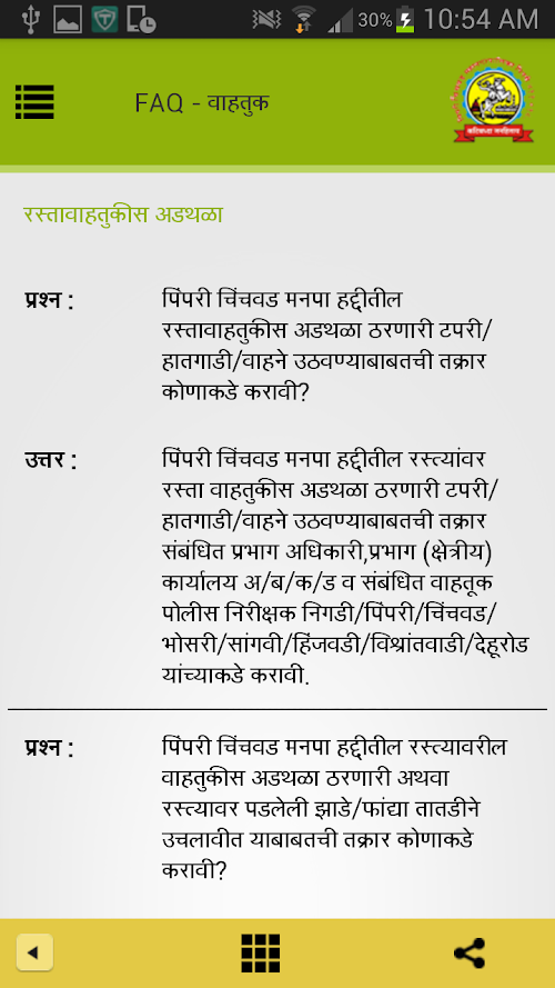 PCMC Helpline - 'SARATHI' (System of Assisting Residents And Tourists through Helpline Information) understand functioning of PCMC's various departments and FAQ through citizen's perspective