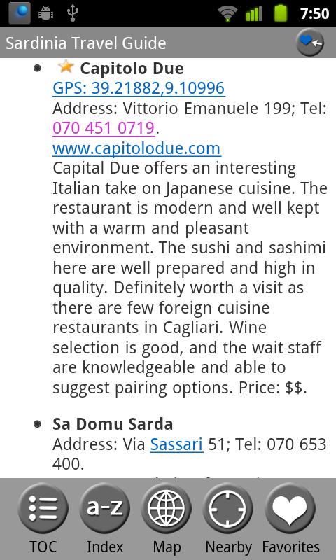 ✔ The top restaurants have been individually selected by MobileReference editors. These restaurants are marked by a star in the EAT chapter and are plotted on the GPS map.