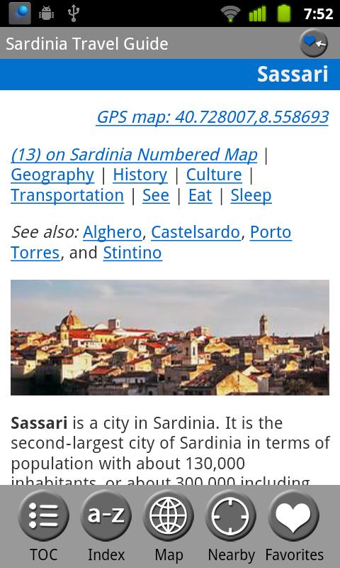 MobileReference Travel Guides provide detailed, practical information about attractions, landmarks, transportation, cultural venues, dining, lodging, history and much more. They are indexed alphabetically and by category, making it easier to access individual articles. Attractions can be viewed on an offline GPS map along with your current location so that you can easily find attractions near you as you explore the city.