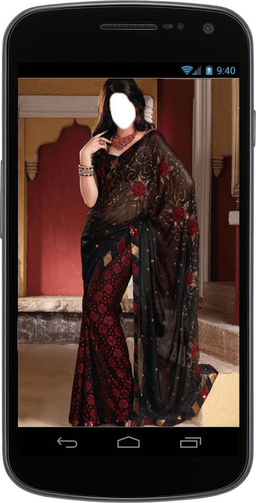This app allows you to set your own or your beloved photo on women indian saree photo frames.