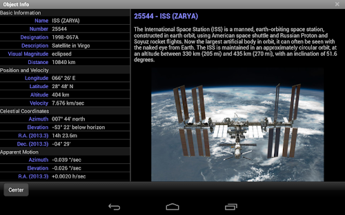 Satellite Safari updates its satellite orbit data from celestrak.com automatically every day. All satellites include facts and figures computed for your precise GPS location, and updated every second. Many satellites also include descriptions that give you the mission's history, purpose, and more.