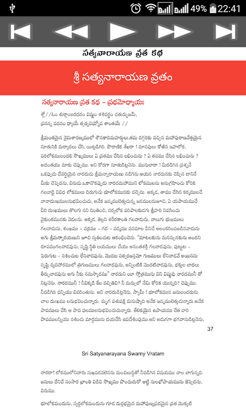 This devotional app Sri Satyanarayana Vratam contains Satyanarayana Vrata Pooja Vidhanam, Satyanarayana Vrata Katha and Satyanarayana Vratam audio in telugu.