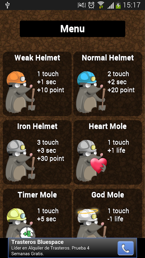 Blue helmet: To remove this mole must press 2 times.