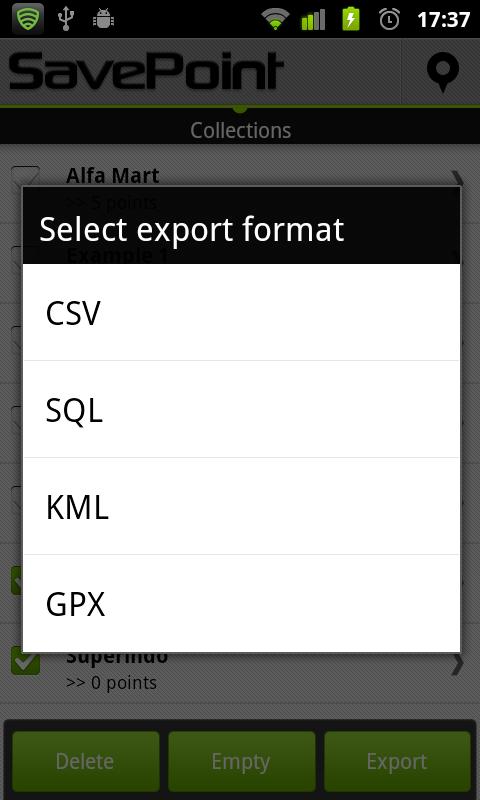 You can also group the waypoints into collections, view them on map and export them into sdcard using several formats.