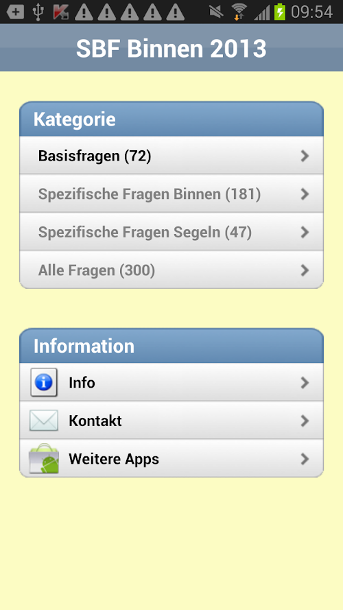 Wir würden uns über eine positive Bewertung unserer App auf dem Google Android Market sehr freuen. Sofern Du Fragen oder Verbesserungsvorschläge haben, kannst Du uns jederzeit via [email protected] kontaktieren.Prepare yourself for the theory test for mobile Sportbootführerschein inland after the latest examination regulations before! With "SBF Binnen 2016" You can learn anywhere on your Android smartphone for testing. It is the interactive addition to a good textbook for the road.