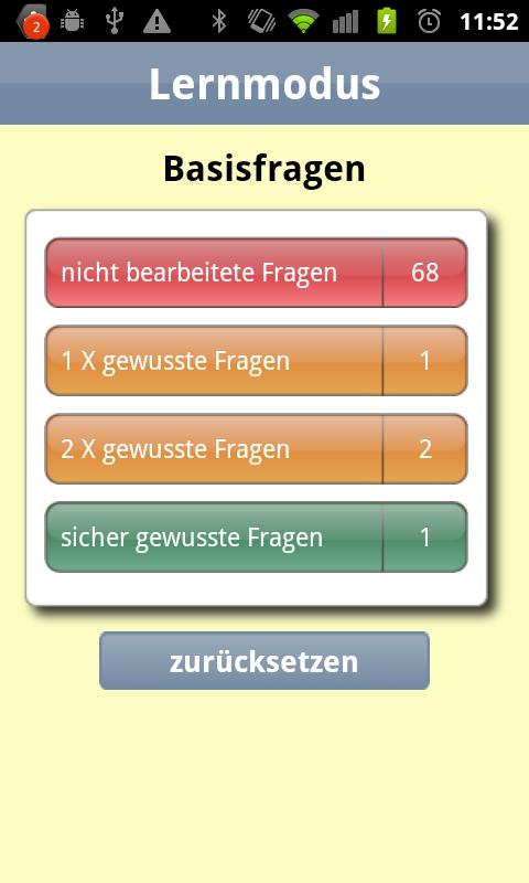 Um effektiv lernen zu können, können Sie Ihre Antworten sofort überprüfen und die Fragen bewerten, um später gezielt zu üben. Unterstützt werden Sie beim Lernen von dem Lernkarten-Lernsystem, dass Ihnen hilft den Fokus auf die für Sie schweren Fragen zu lenken.