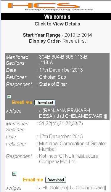 Note - Supreme court Judgments are always updated up-to 10 days back from 1950, last 60 years Judgments can be searched and complete judgment is there