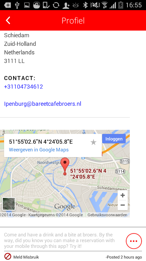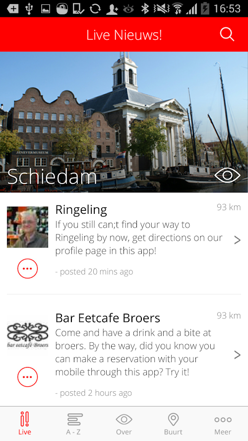 Deze app wordt ondersteund door ondernemersverenigingen en winkeliers, bars, restaurants en andere ondernemers die hun nieuws, informatie en aanbiedingen live in deze app publiceren. Dit live nieuws ververst bovendien automatisch waardoor telkens updaten niet nodig is. U hoeft de app alleen maar te openen en u ziet direct alle nieuwtjes, aanbiedingen en acties in Schiedam. Ook kunt u specifiek zoeken door het nieuws te filteren op categorie. Zo kunt u dus snel precies dat vinden wat u zoekt op het gebied van winkelen, dienstverlening, persoonlijke verzorging, overnachten en evenementen en excursies in Schiedam. Dat is Stapping Stone; stad en land lekker bij de hand!This app is supported by business associations and retailers, bars, restaurants and other businesses that their news, information and offers publishing live in this app. In addition, this live news refreshed automatically every time so that updating is not necessary. Simply open the app and you will see the latest news, offers and deals in Schiedam. Also you can search specifically by filtering by category the news. So you can quickly find exactly what you need in terms of shopping, services, personal care, and overnight events and excursions in Schiedam. That's Step Pingstone; town and country good at hand!