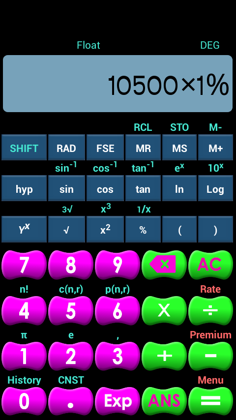 2. For deeper calculation, we provide features like: sin, cos, tan, ln, log, Yᵡ, √ (square root), ³√ (cube root) , percentage, RAD, FSE, MR, MS, M +, hyp and shifts.