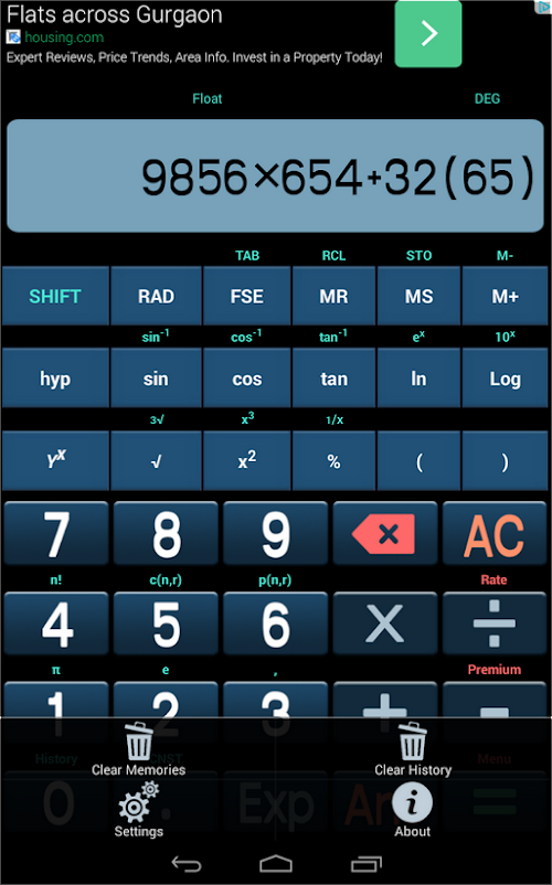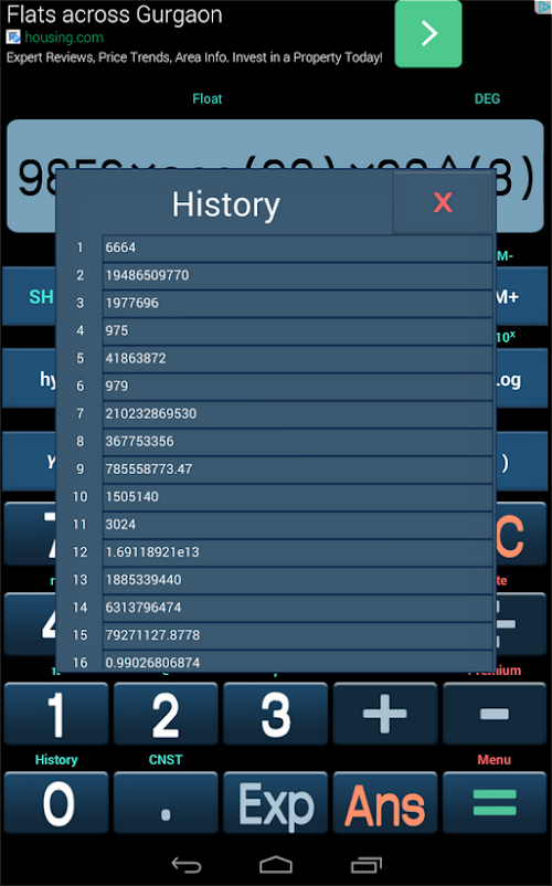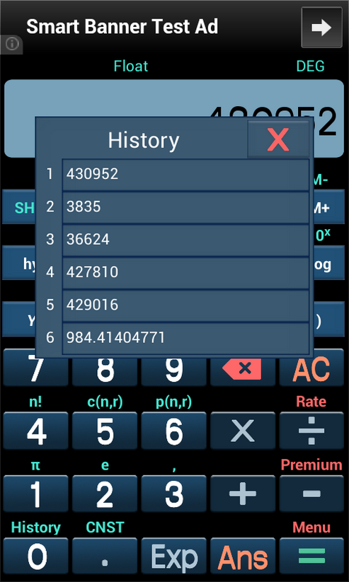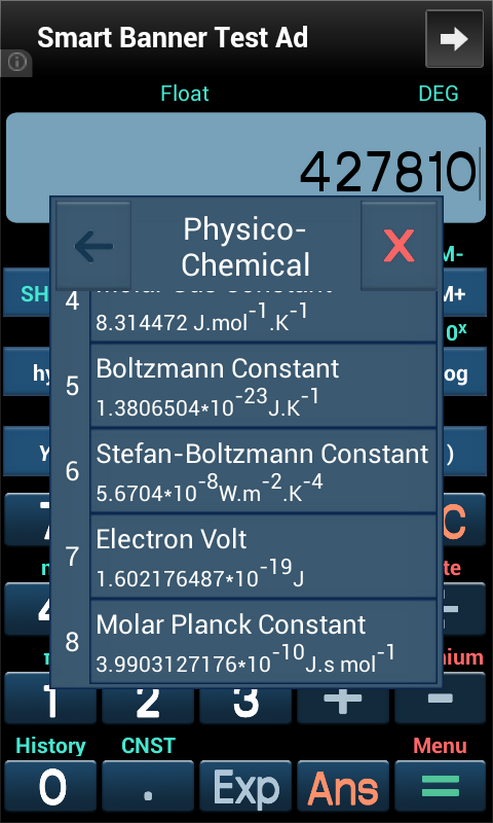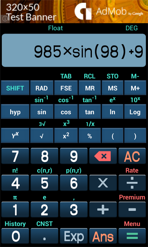 An advanced scientific calculator with all the functions and constants you'd expect, a calculation history