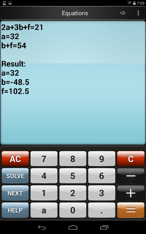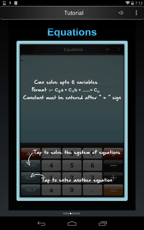 It allows you to set number of variables (max 6- a,b,c,d,e,f) i.e. you can solve the equation with up to 6 variables and find out their values.