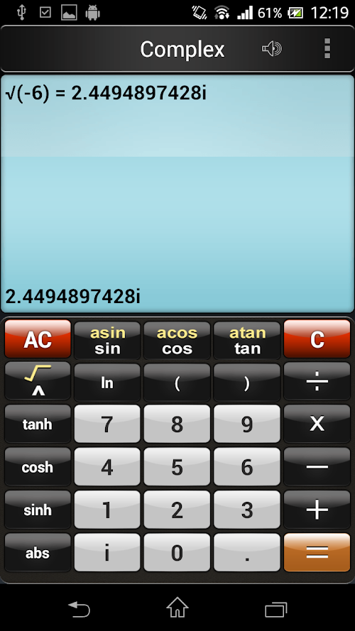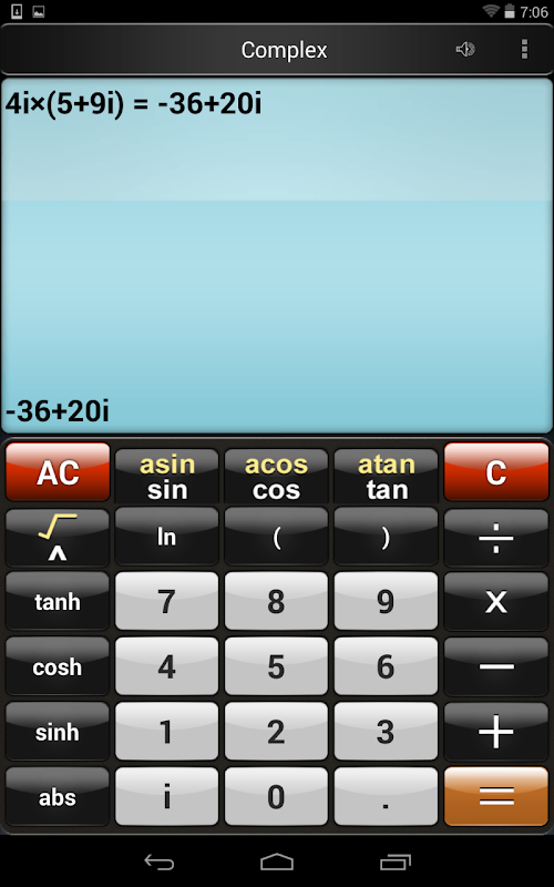 ► Complex Calculator - In Complex Calculator you can calculate the trigonometric, hyperbolic and logarithmic function values of complex numbers. Complex calculator also provides the functionality of calculating square root, power function and absolute values of complex numbers.