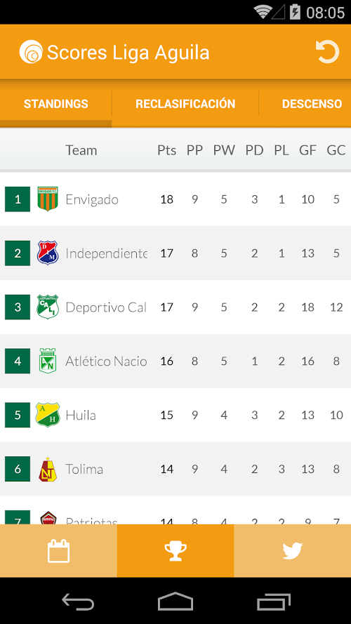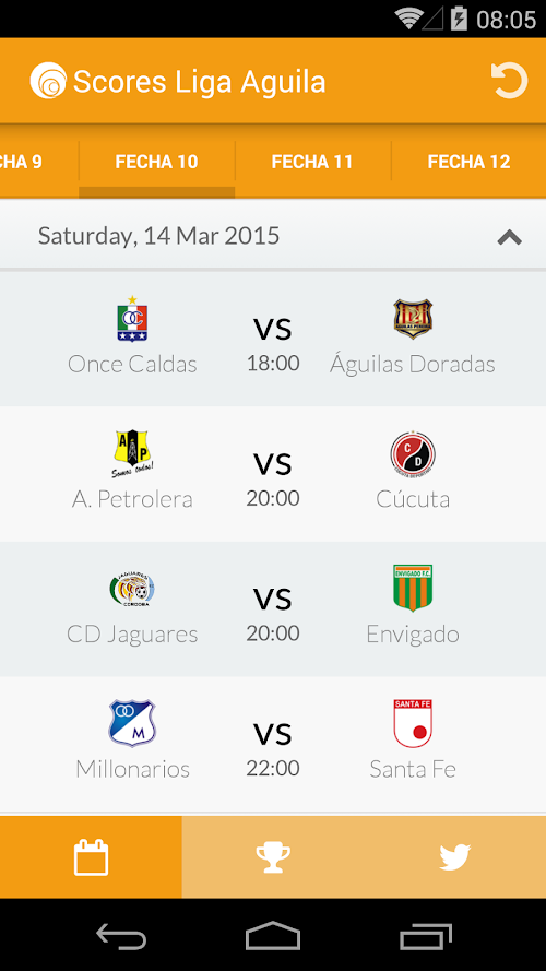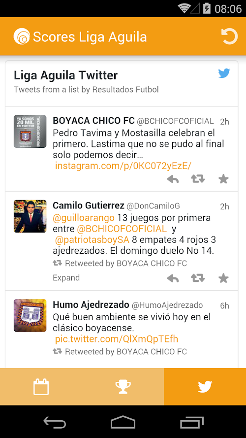 Another option that makes the application is very complete, is the ability to follow everything that happens in the Twitter of each of the teams of the Colombian Football League.