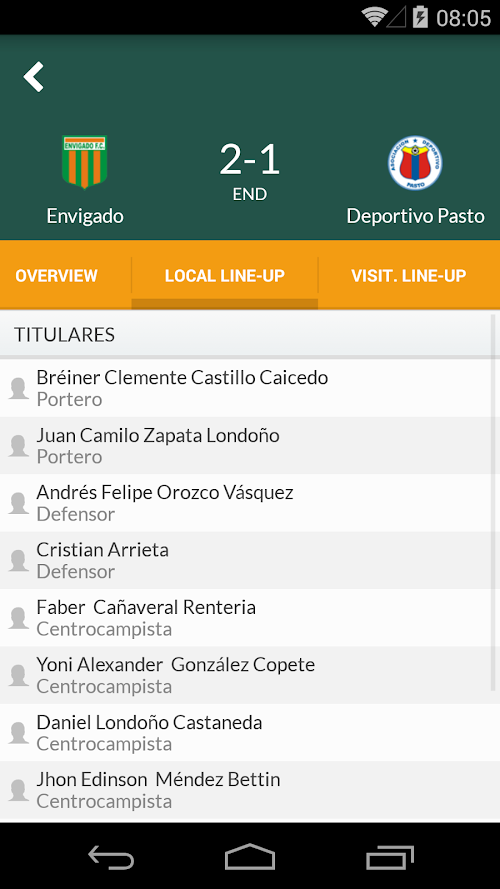 Also knows all the details of each Eagle League team, payroll, statistics and more. You can also see the standings in the Primera A Colombian soccer detail.