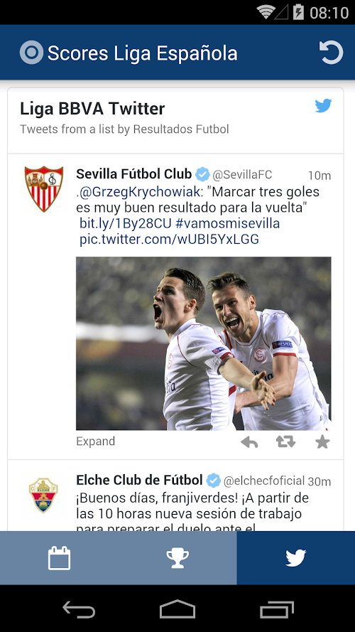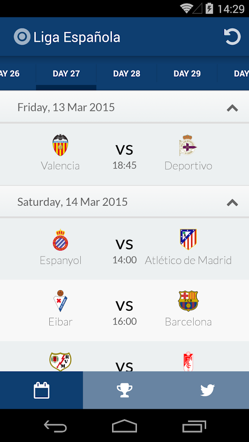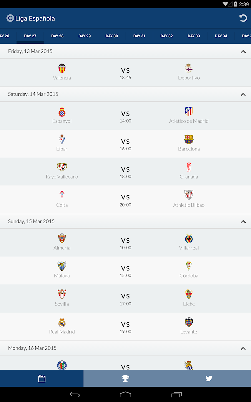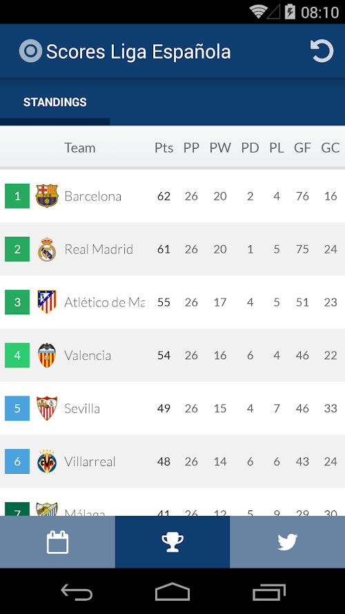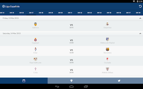 Definitely a complete application to track all the latest Real Madrid, Barcelona, Valencia, Atletico Madrid, Sevilla, Athletic, Villarreal and other teams in La Liga.