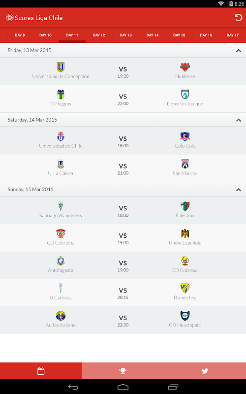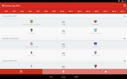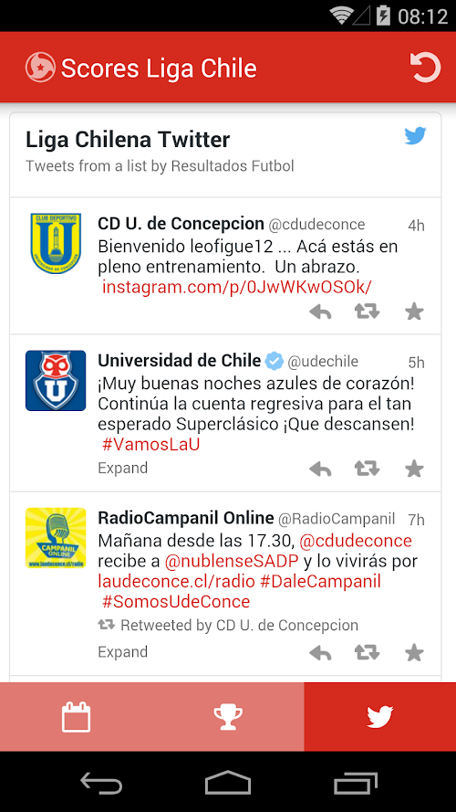 You can also see tweets from the official Twitter accounts of each of the teams in the Liga Chilena.