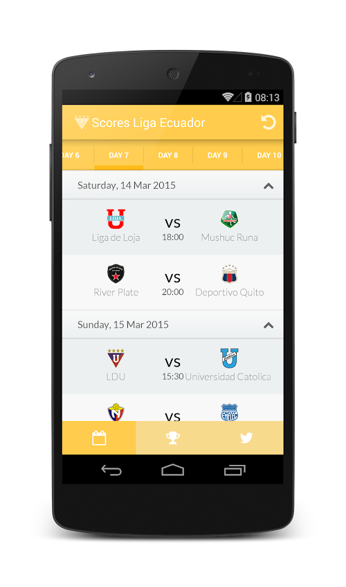 With this application you can follow live all games of your favorite teams: Emelec, Barcelona Guayaquil, Independiente del Valle, Liga de Quito and many more.