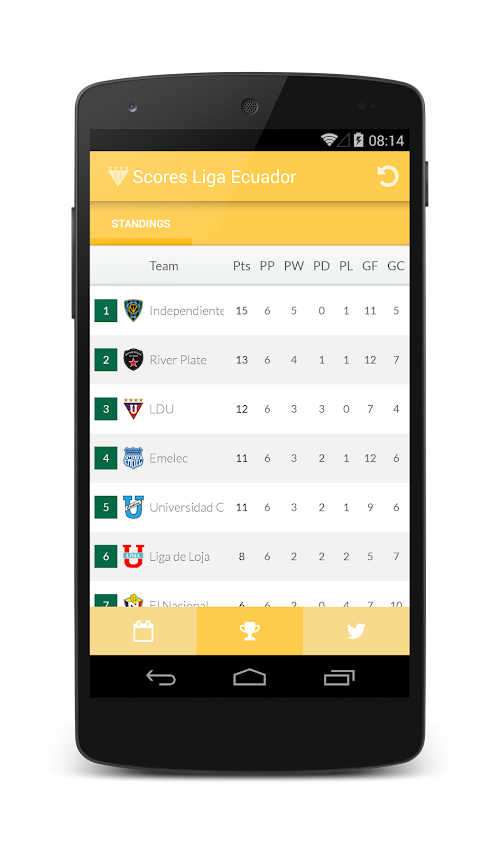 If you like the Ecuadorian football and want to be informed on your phone for everything that happens in the Ecuadorian Serie A, we offer the most complete and updated application of Ecuadorian soccer, Serie A Results (Ecuador).