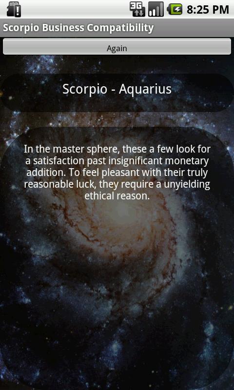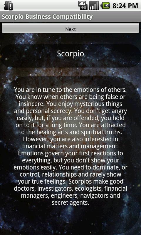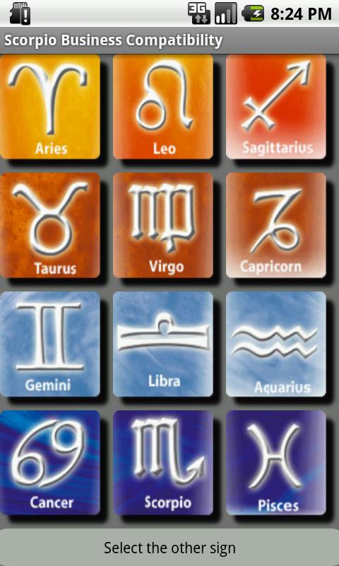 With this application you can see the business compatibility between people born under the sign Scorpio and the other zodiac signs.