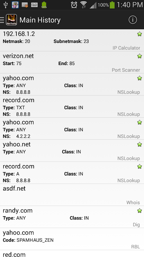 * NSLookup (58 records types!) - You can even easily run a series of NSLookups across a whole range of IPs at once!