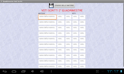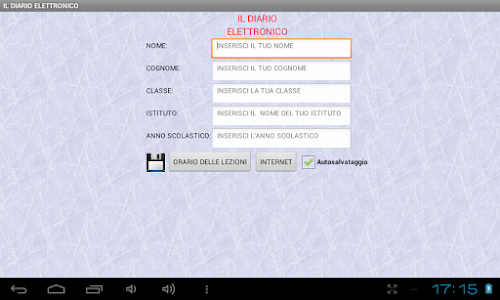 Grazie a questa semplicissima app possiamo gestirci il nostro orario scolastico direttamente dallo smartphone o dal tablet, inoltre finalmente potremo abbandonare i nostri diari e alleggerire i nostri zaini!"THE ELECTRONIC DIARY" app is very useful for school, it is your personal diary school that allows you to pin: weekly schedule, grades, assignments, notes disciplinary absences, delays, and much more ...