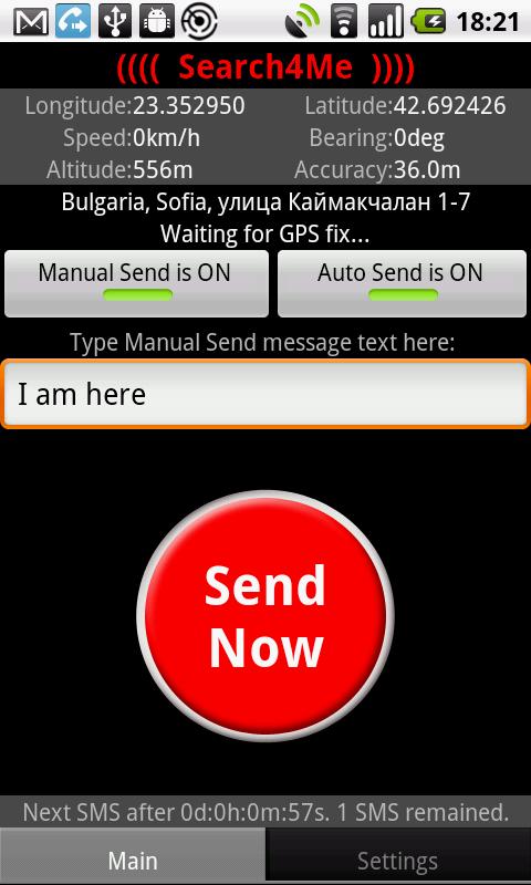 At the start of the application GPS is turned on in order to get recent coordinates. If you want to switch GPS off click MANUAL SEND on and then off.